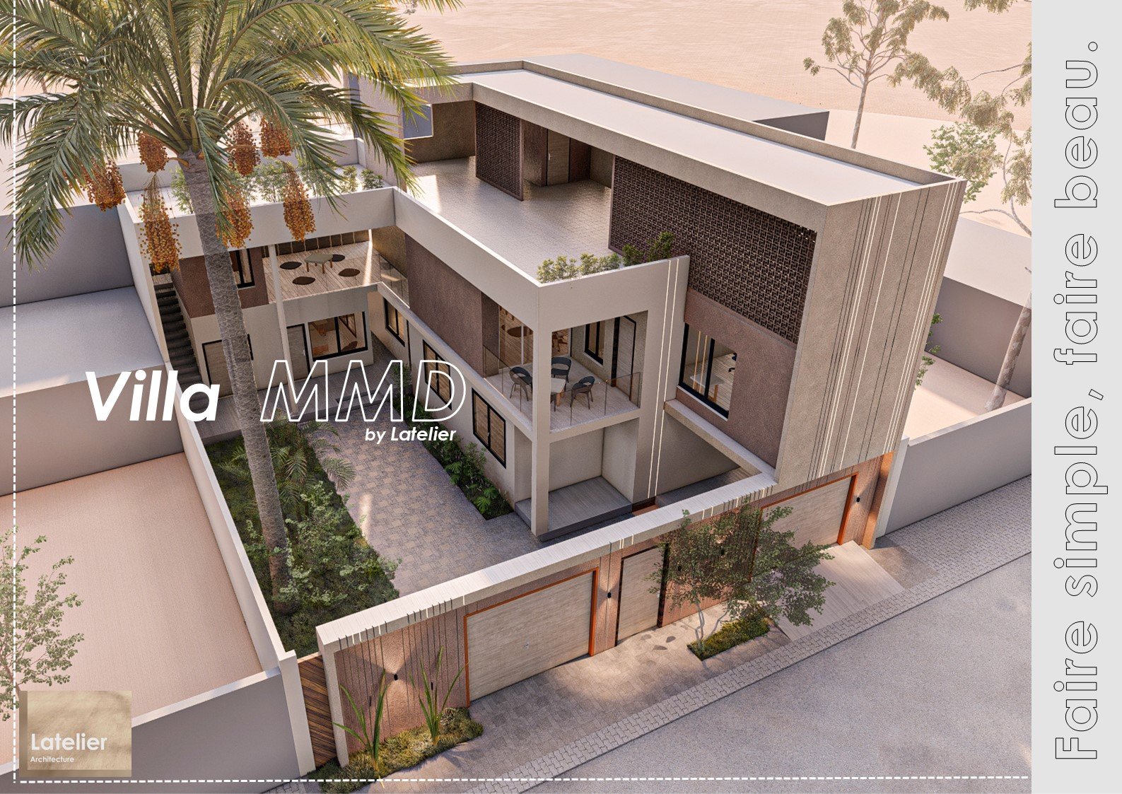 Au cœur de Lomé, la Villa MMD s’inscrit dans un contexte urbain existant, avec un rez-de-chaussée conservé et valorisé. Le projet se développe en surélévation, offrant une architecture contemporaine qui dialogue avec l’existant.